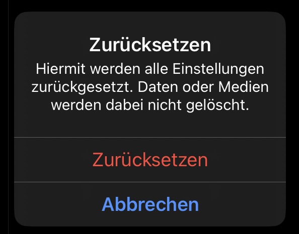 In Schritt drei klicke auf „Zurücksetzen“ (!) und nun kommt es drauf an, wie viel und was von deinen Einstellungen gelöscht wird. Wenn du Glück hast, reicht es aus, dass du in